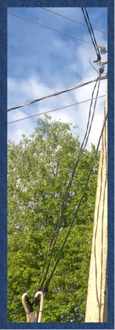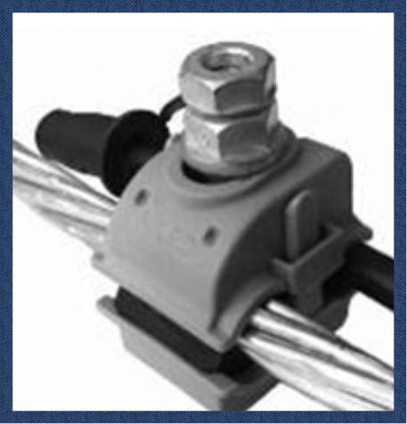 Наверху, на столбе, специальными соединителями - зажимами прокалывающими ответвительными, провода вводного СИП кабеля будут присоединены к магистральным электрическим проводам( идущим между столбами).