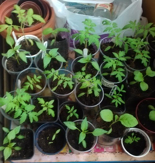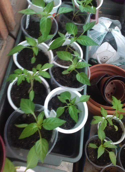 На 5 марта у меня взошли все перцы, некоторые сорта, которые сажала 9 февраля, начали растить настоящие листики. Конечно, не хватает освещения. Это очень плохо, так как именно сейчас перцы закладывают программу на будущий урожай. Но, делать нечего. Досветки все равно нет, будем дожидаться солнечных дней и температуры больше 10 градусов - тогда рассада вся переедет на балкон.