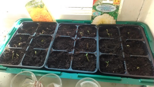 Лук Эусибишн очень плохо взошел. Переставила его на холодный подоконник - может жарко ему в комнате? Завтра заеду в магазин, если будут семена - куплю, попробую пересеять.