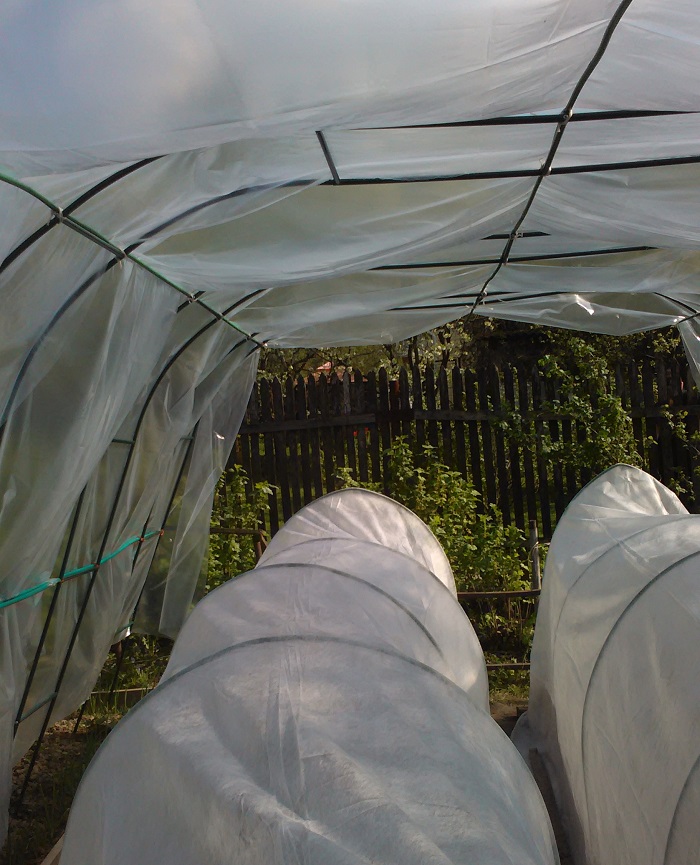Закрыли агроспаном и пленкой перцы, баклажаны, огурцы, бахчевые.
