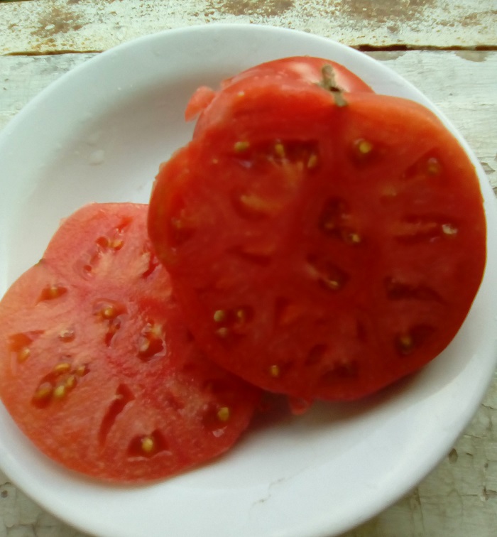 Один помидор весит полкило, еще два такие же Очень вкусный. Сочный, не сахарный. Есть и кислинка и сладость. Как я люблю