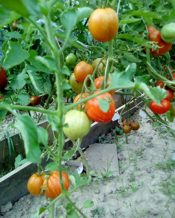 Украшение грядки. Начал вязать плоды одним из первых. Вкусный.Урожайный. Расцветка фантастическая. Очень красивый.