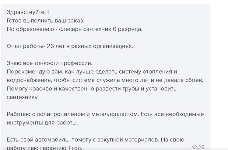 Ну, думаю, ок, все, заказ отправлен и тут началось. Я, честно говоря, немного был шакирован - начинает писать реально куууча мастеров! Ну я такой, очень обрадовался, хорошо ведь!