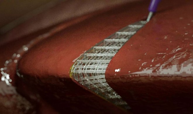 Основное достоинство таких биочернил – печать прямо внутри тела пациента. Это может быть воссоздание фрагментов сосудов или зашивание ран. В реальном времени 3D-принтер выполняет печать нити по подобию швейной машинки. С помощью иголки делается прокол в ткани, в полученное отверстие подаются чернила, запечатывая снаружи. В конце по типу второго узла нити добавляется еще капля чернил. Послойная печать образует в итоге трехмерную конструкцию.