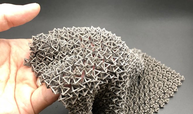 Процесс изготовления этой ткани в форме октаэдра осуществлялся на 3D-принтере, где за основу был взят нейлон. Полученный материал инкапсулировали в пластиковую оболочку и уплотнили под воздействием вакуума. Это увеличивает жесткость структуры в 25 раз.