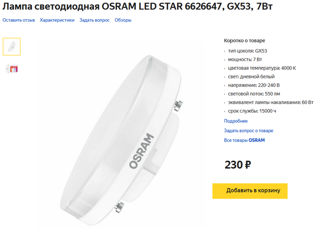 https://market.yandex.ru/product--lampa-svetodiodnaia-osram-led-star-6626647-gx53-7vt/993869795?text=OSRAM LED STAR 6626647&cpc=fLp9VffubP23tVmuXVjRVoW-eqvuxdHcGV7F9wf2tLFIG6OxewvA10IPyxZig4FktJfnindHRGDd9HIowbs5O1f0tvevKiLXpVQAo8bZkRp7KKmv6aea-YnxnuIj_z3e73j2BxZ9XHRwOWk-FPxFGslHjp0peB4wBs9PeRWndT1sc7rLrEIP6g%2C%2C&sku=993869795&do-waremd5=wSIrS9S23RWWqdt_CyEt8Q&cpa=1&nid=55150