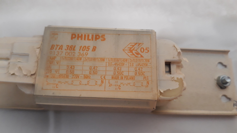 Данный светильник изготовлен в 2002 году, дросселя в нем стоят Philips старого поколения. С 2002 года по конец 2020 этот светильник работал в офисе каждый день с 9 до 17 часов вечера.