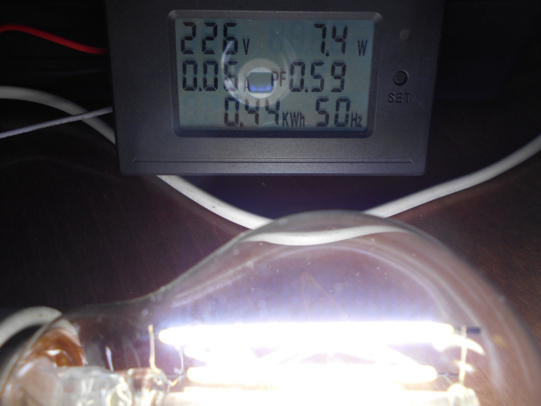 После этого лампа стала запускаться . Как и в случае со "свечкой" уменьшил ток через светодиоды . Потребляемая мощность лампы уменьшилась с 7,4 Вт до 6,1 Вт . На удивление светит чуть ярче своих братьев . Сколько проработает неизвестно