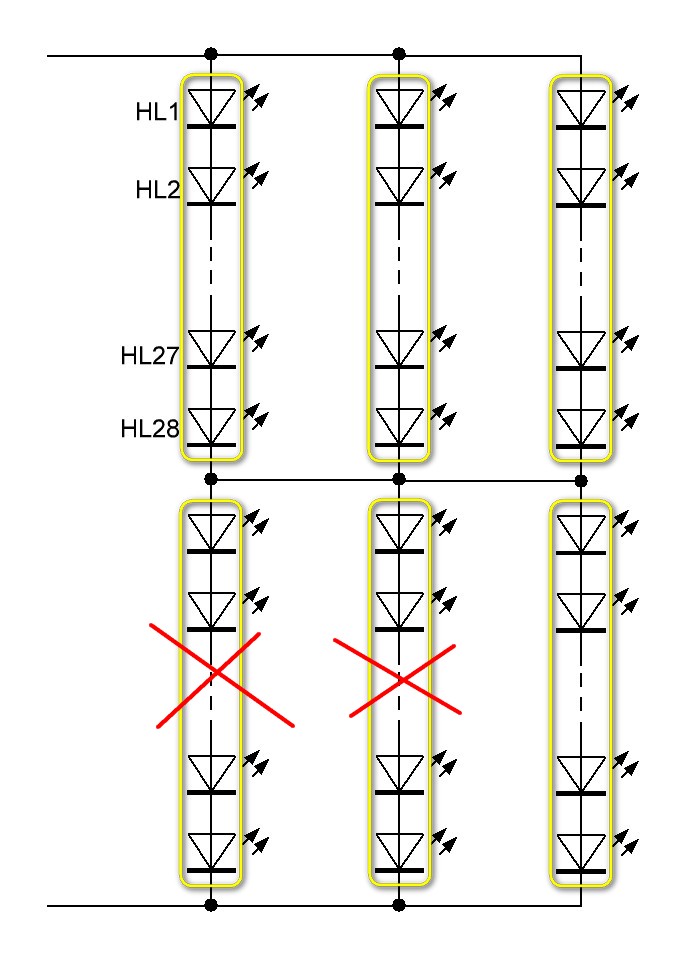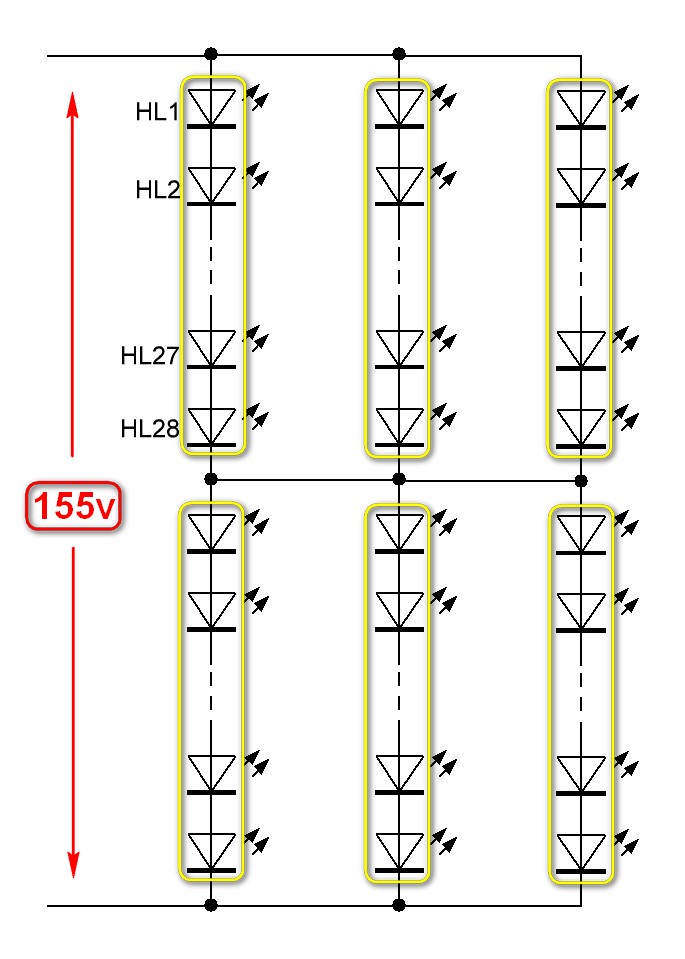 Получается в лампе 96 светодиодов и соединены они последовательно.