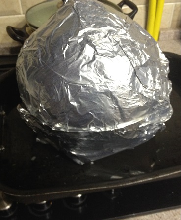 Обратите внимание, что тыкву поставили в поддон с водой.